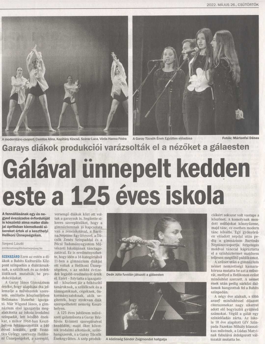 Gálával ünnepelt kedden este a 125 éves iskola (Tolnai Népújság)